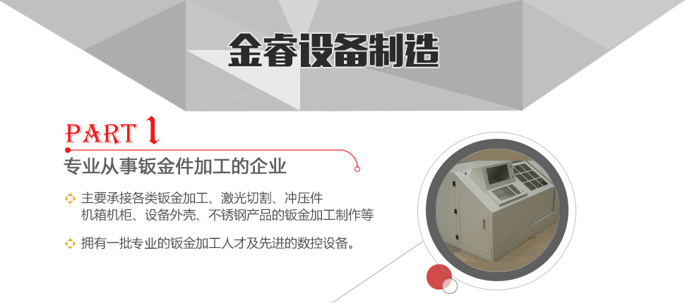 合肥金睿機械制造有限公司是一家長期從事鈑金件加工的新技術股份制企業,主要承接各類鈑金加工、激光切割、沖壓件、機箱機柜、設備外殼、不銹鋼產品的鈑金加工制作等。公司坐落于安徽省肥東縣龍?zhí)燎嗄旯I園,距合肥繞城高速龍?zhí)脸隹趦H2公里,華東建材城對面,交通十分便利,地理位置優(yōu)越。現擁有廠房建筑面積2000余平方米,員工30余人。   合肥金睿機械制造有限公司擁有一批專業的鈑金加工人才及先進的數控設備。主要針對:農業設備、汽車、醫療設備、金融、電信交通、新能源、電器、環(huán)保、機械、建筑裝飾、等行業的鈑金件進行加工、激光切割和表面處理等。   合肥金睿機械制造有限公司加工設備均采用進口數控沖床...